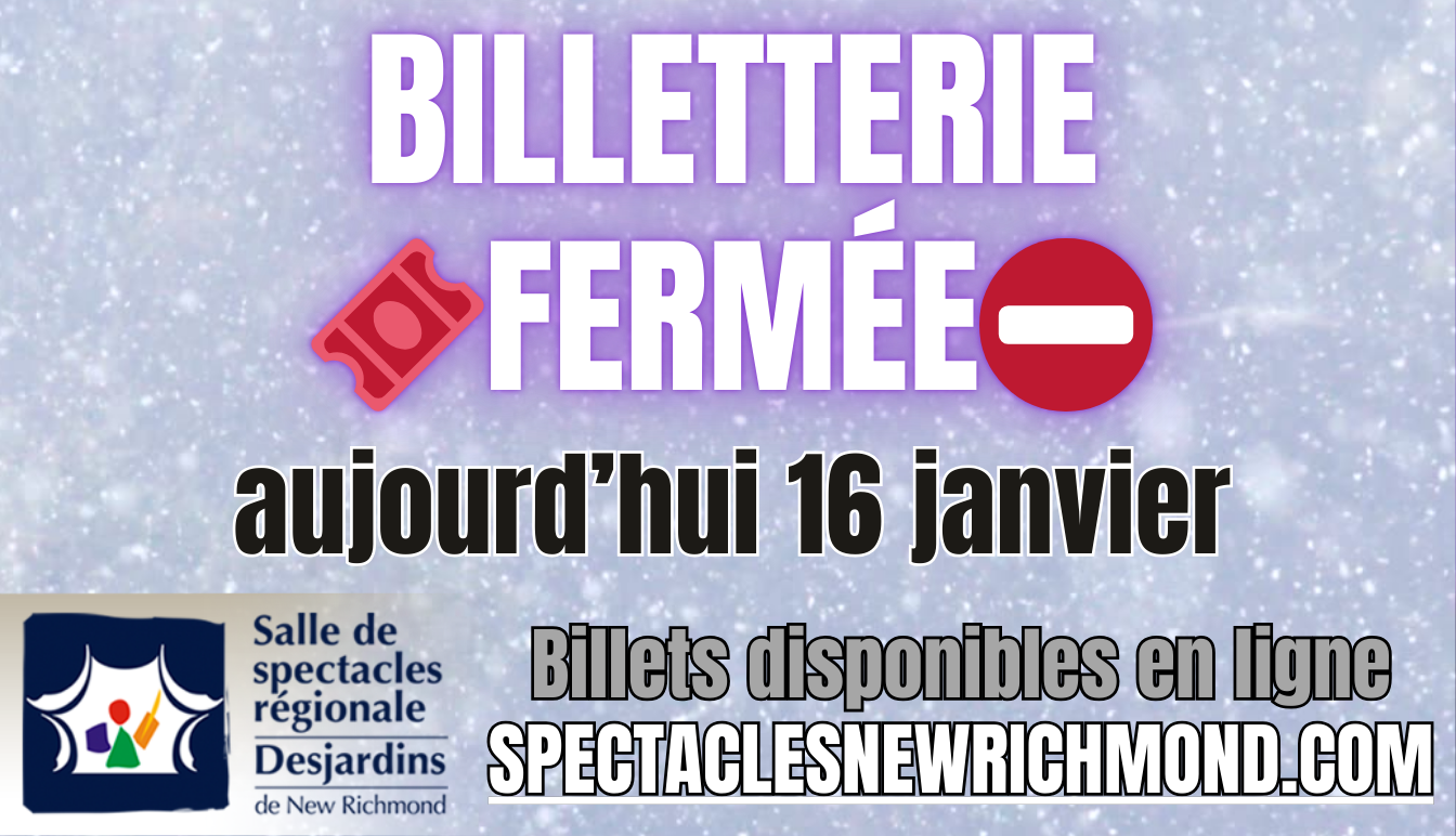 La billetterie de la Salle de spectacles sera fermée aujourd’hui 16 janvier en raison des conditions météo.